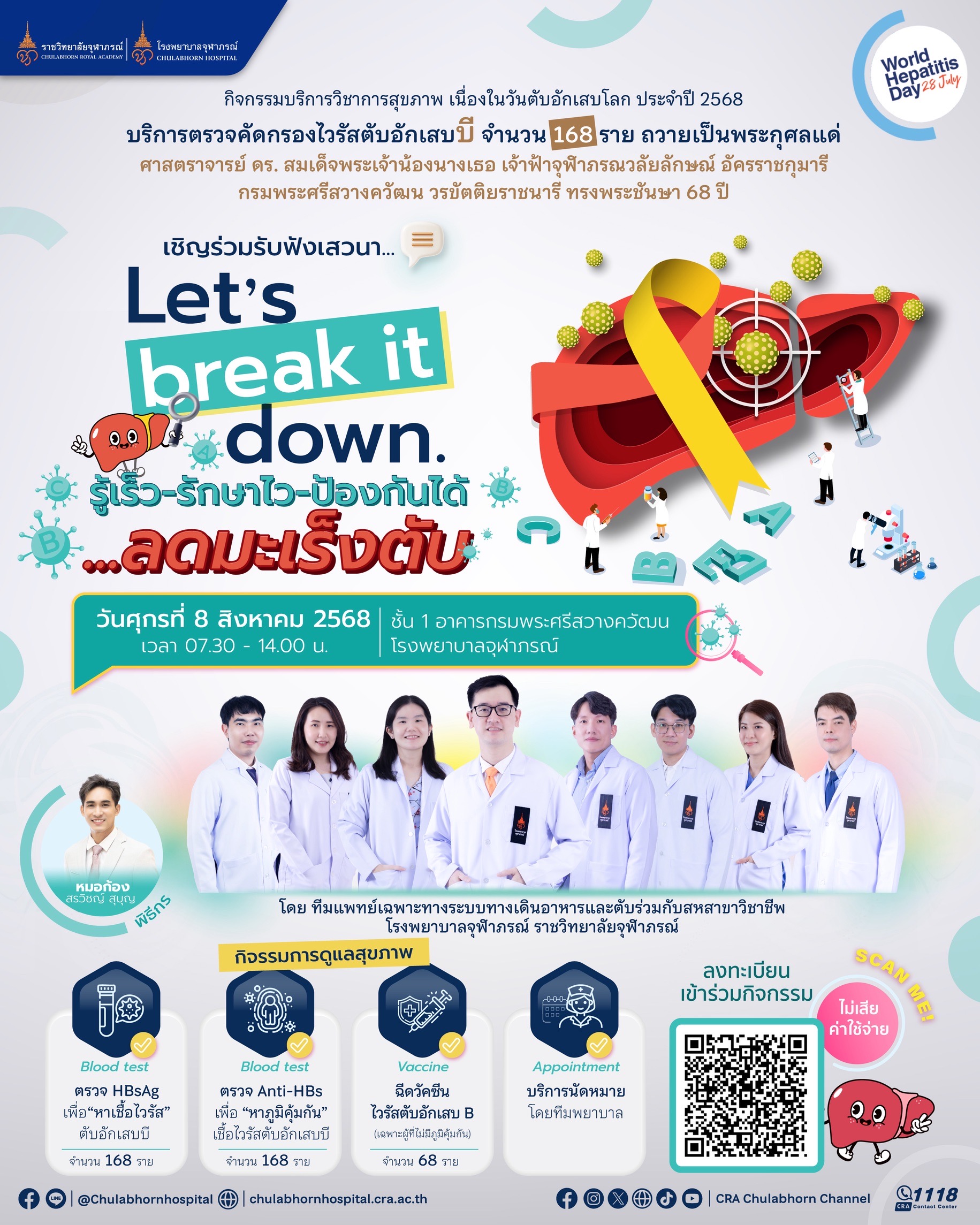 กิจกรรมบริการวิชาการสุขภาพ เนื่องในวันตับอักเสบโลก (World Hepatitis Day) ประจำปี 2568
