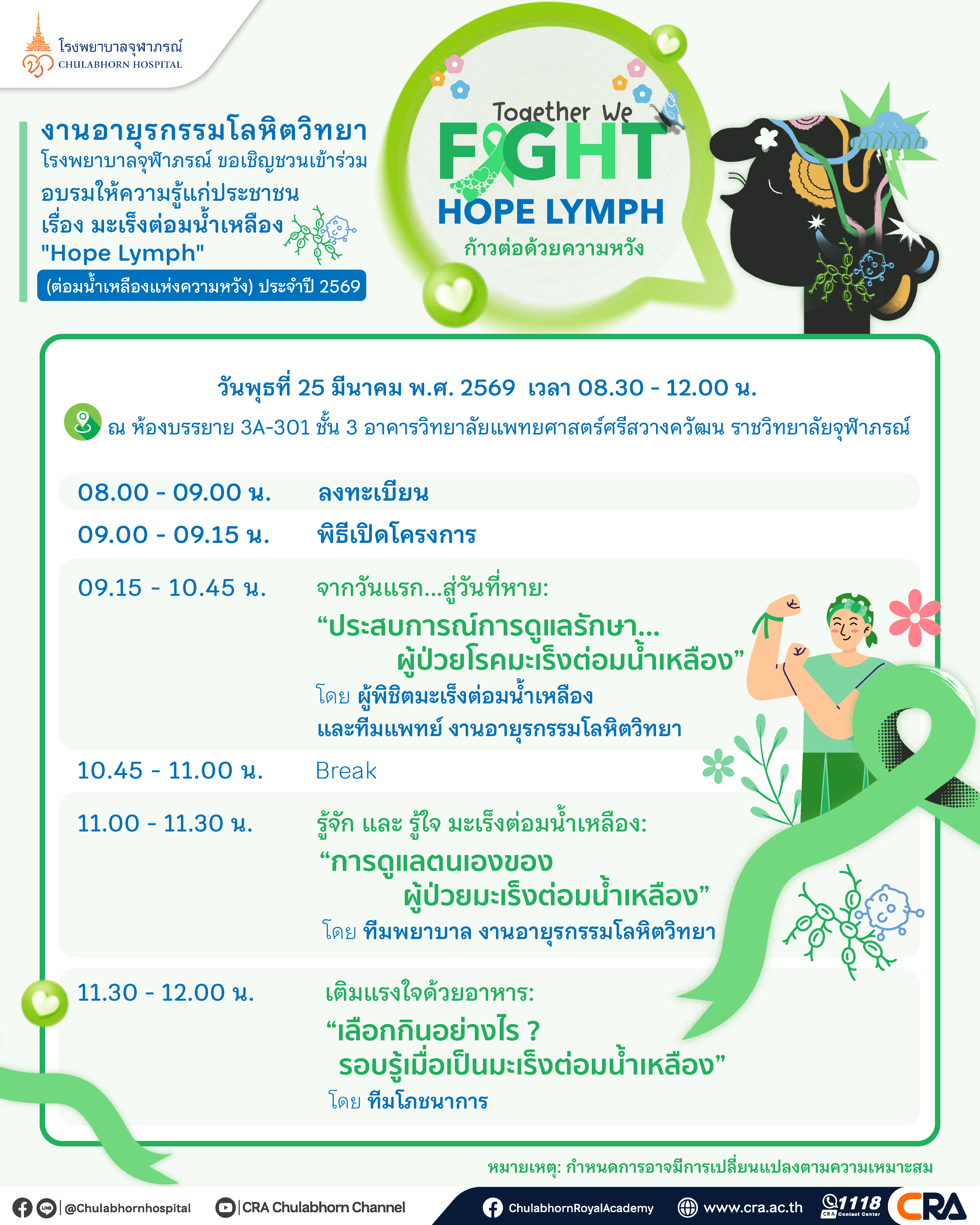 Hope Lymph โครงการอบรมให้ความรู้เรื่องมะเร็งต่อมน้ำเหลือง