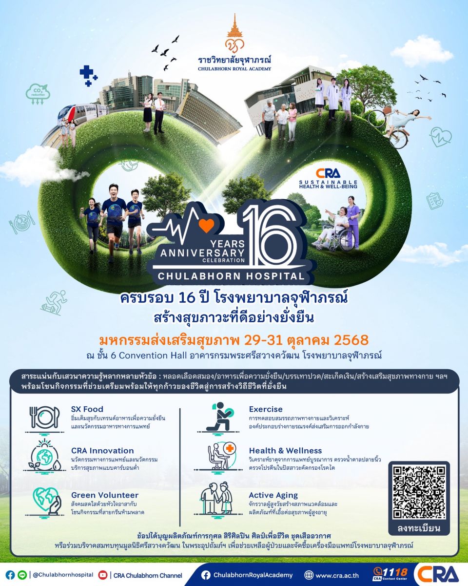 CRA SUSTAINABLE HEALTH & WELL-BEING มหกรรมส่งเสริมสุขภาพ ครบรอบ ๑๖ ปี โรงพยาบาลจุฬาภรณ์ สร้างสุขภาวะที่ดีอย่างยั่งยืน CRA SUSTAINABLE HEALTH & WELL-BEING มหกรรมส่งเสริมสุขภาพ ครบรอบ ๑๖ ปี โรงพยาบาลจุฬาภรณ์ สร้างสุขภาวะที่ดีอย่างยั่งยืน